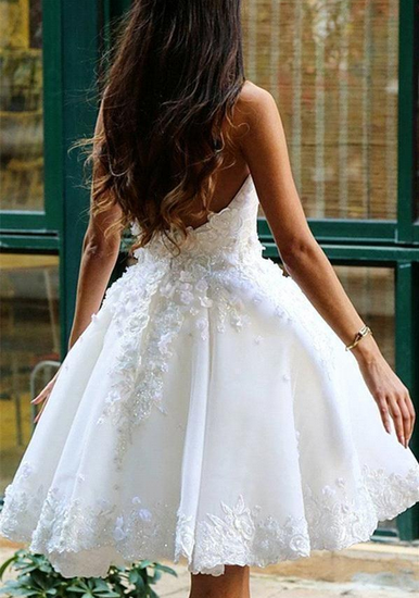 Charming Country Sweetheart Knee Length Wedding Dresses With Lace Appliques Beads Sequins A Line Beach Bridal Gowns Low Backless