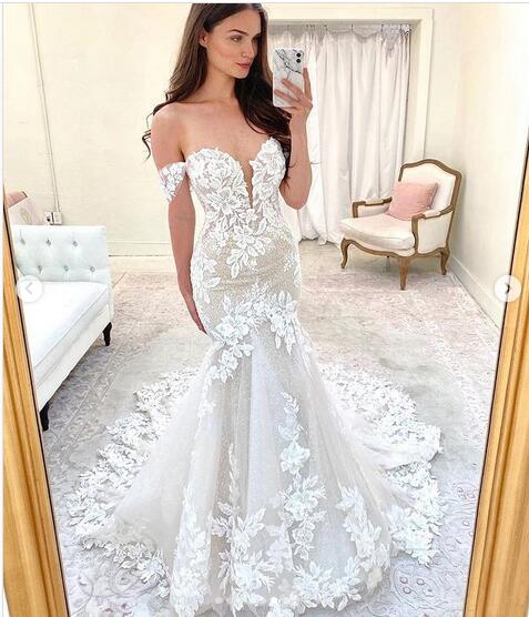 Luxury Mermaid Lace Appliques Wedding Dress Bridal Gowns