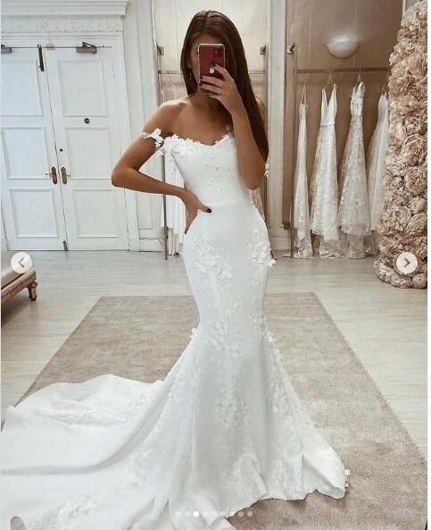 Mermaid Tulle Wedding Dress Off Shoulder Appliques Bridal Gowns