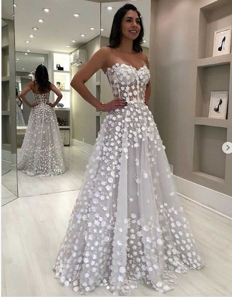 Sexy Tulle Wedding Dress A-line Sweetheart Floral Bridal Gown Wedding Gown