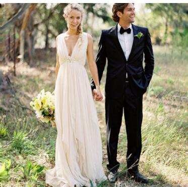 Sexy V Neck Beach Wedding Dresses Empire Backless Pleated Chiffon Sash Beaded Bridal Gowns Sweep Train Custom Made