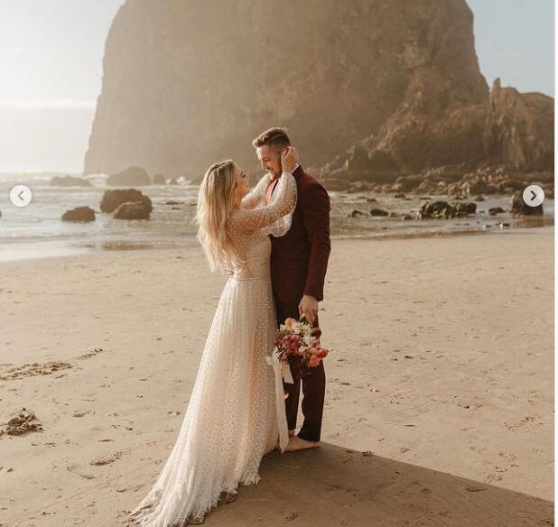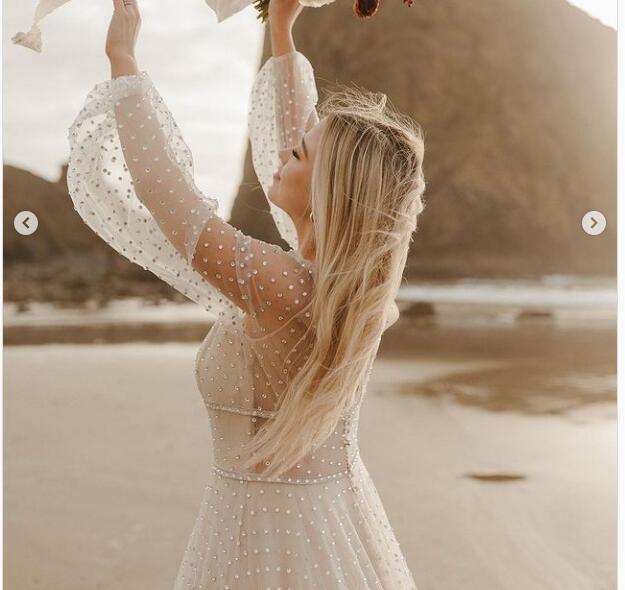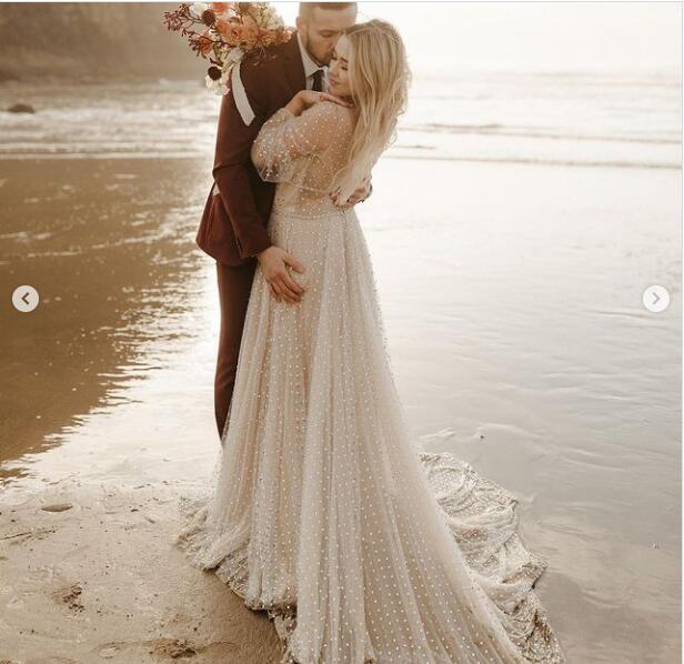 Sexy Sequins Lace Wedding Dress Deep V Neck Bridal Dress Bridal Gown