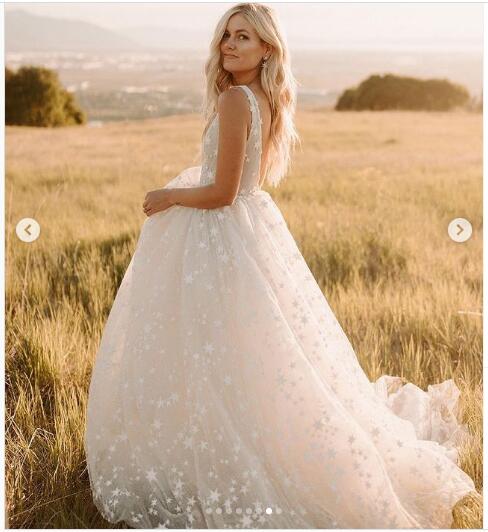 Elegant Ball Gown Lace Stars Wedding Dress Beach Boho Bridal Dress Bridal Gown