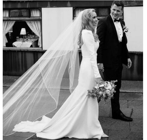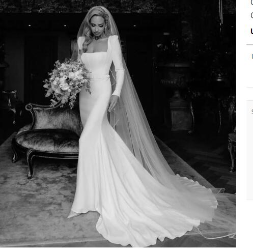 Classic Long Crepe Wedding Dresses Mermaid Sweep Train Bridal Gowns with Sleeves Square Collar Robe De Mariage for Women