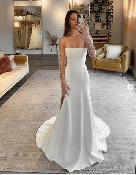 Simple Satin Wedding Dress, Strapless Wedding Dress(gloves are not included)