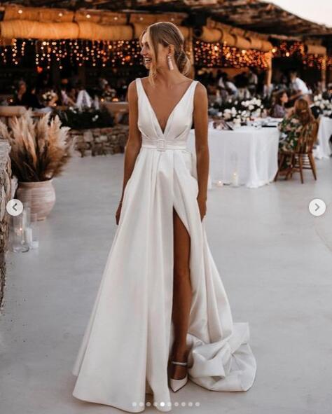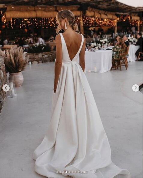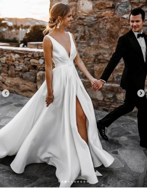 Sexy Wedding Dress, Deep V-neck Wedding Dress, Backless Wedding Gown