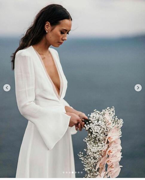 Sexy Wedding Dress, Deep V-neck Wedding Dress, Sheath Wedding Gown