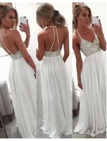 Beach A Line Modest White Long Sequins Bridal Gowns Sexy Spaghetti Straps Chiffon Floor Length Backless Wedding Dresses