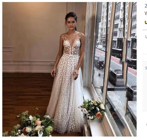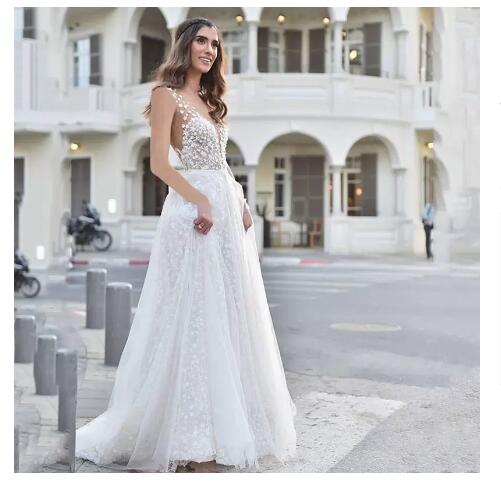 European and American Foreign Trade New Wish Amazon Elegant Graceful Womens Wedding Dress Sexy V-neck See-through Dress