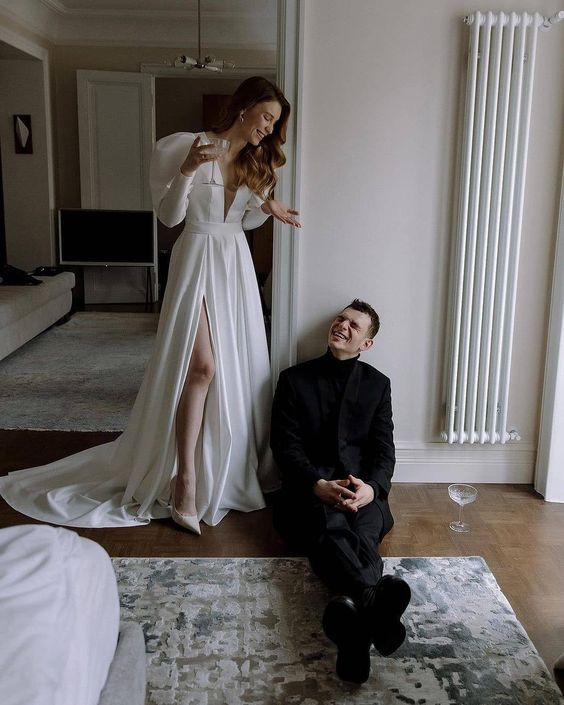 Simple Italian Style Bohemian Side Slit Boho Wedding Dresses Bridal Gowns