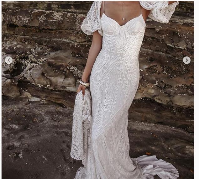 Lace Mermaid Boho Bridal Gowns Wedding Dresses