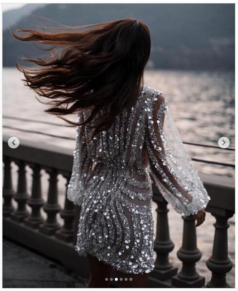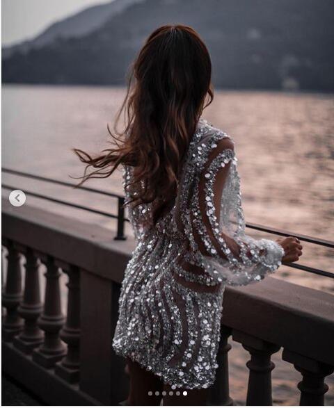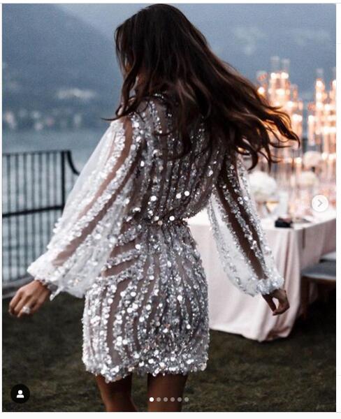 Sparkle Mini Short Wedding Dresses Sequins Lace Bridal Gowns