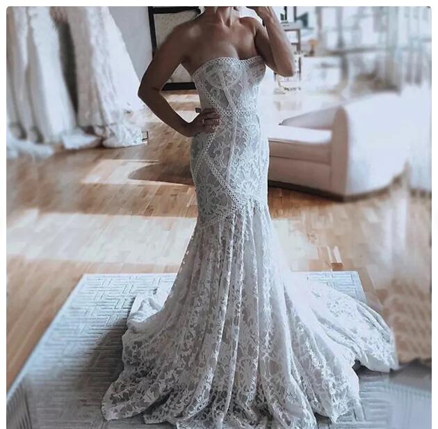 Luxury Exclusive Lace Mermaid Wedding Dress Removable Straps Bridal Gowns