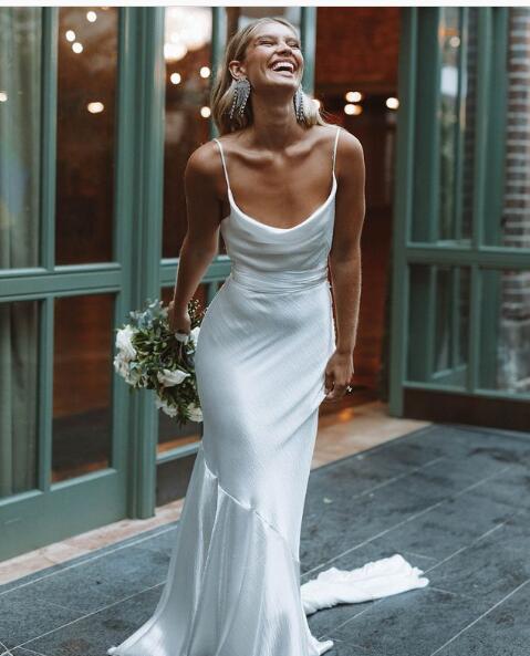 Simple Beach Boho Mermaid Spaghetti Straps Wedding Dress Bridal Gowns