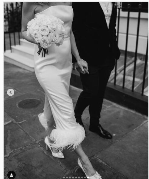 Tea-length Sheath Strapless Wedding Dresses Bridal Gowns