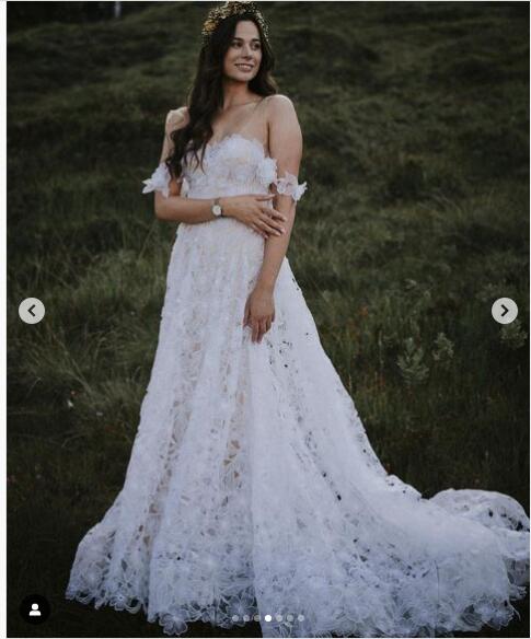 A Line Tulle Lace Appliques Boho Beach Wedding Dresses Bridal Gowns