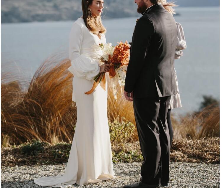 Simple Mermaid Long Sleeve Garden Wedding Dresses Bridal Gowns