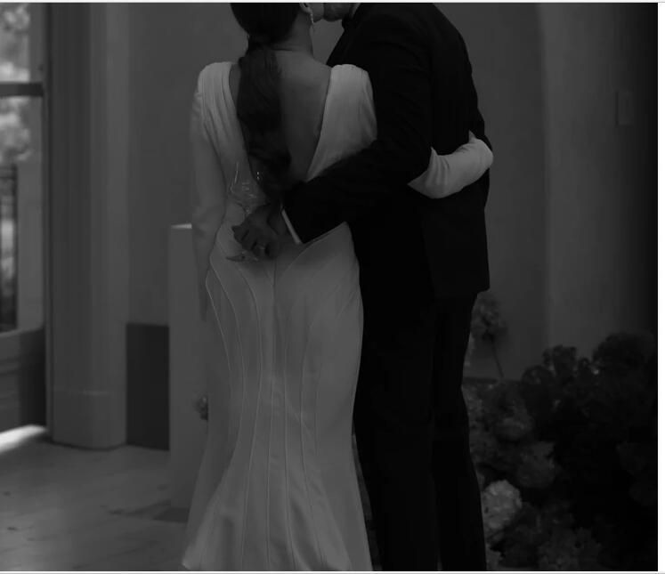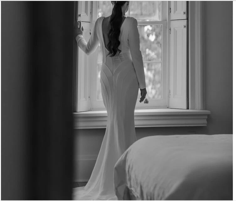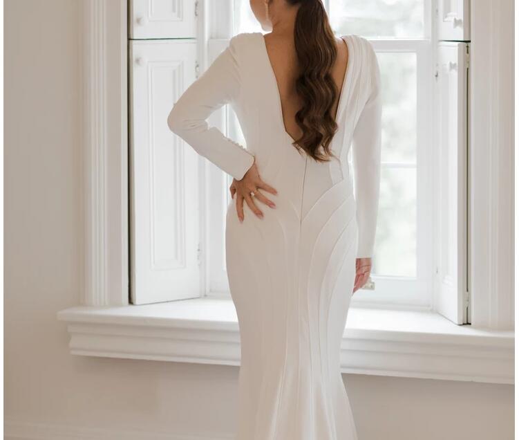 Simple Mermaid Long Sleeve Garden Wedding Dresses Bridal Gowns
