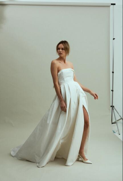 Ball Gown Side Slit Boho Beach Wedding Dresses Bridal Gowns