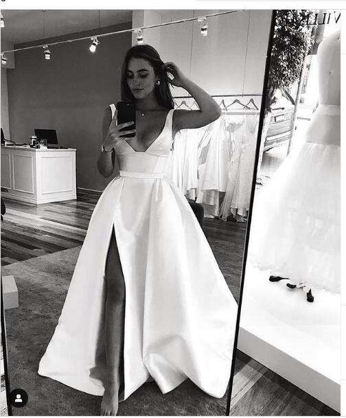 Simple A Line Beach SIde Slit Wedding Dress Bridal Gowns