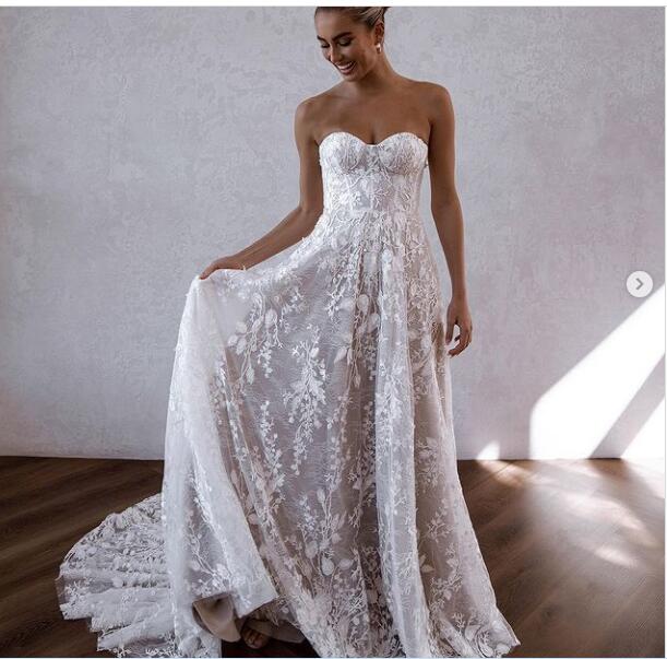 3D Handmade Flowers Sweetheart Wedding Dresses Bridal Gowns