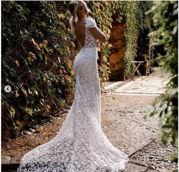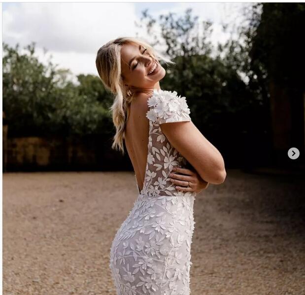 3D Handmade Flowers Cap Sleeve Wedding Dresses Bridal Gowns