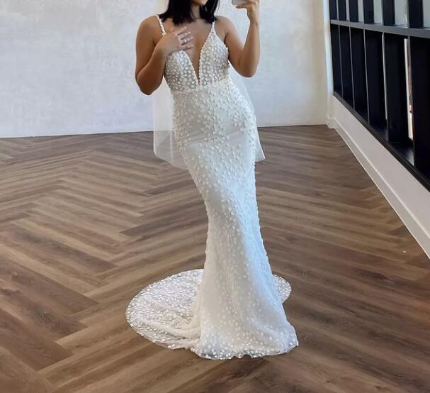 Mermaid Handmade Flower Lace Wedding Dresses Bridal Gowns