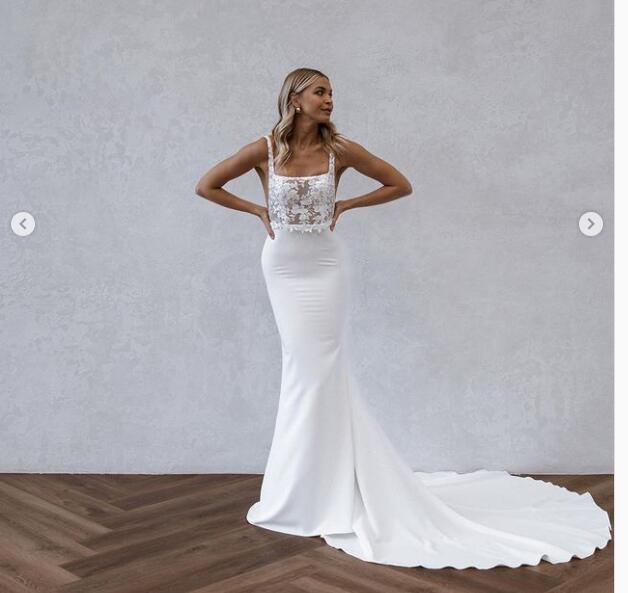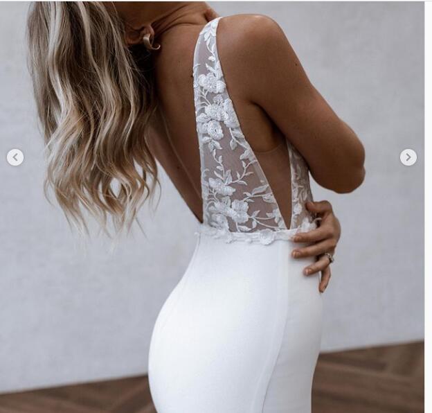 Simple Lace Bodice Beach Boho Wedding Dresses Bridal Gowns
