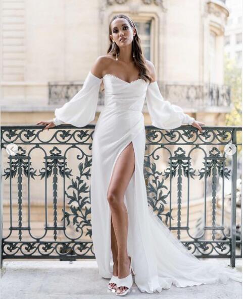 Simple Mermaid Side Slit Beach Boho Wedding Dresses Bridal Gowns
