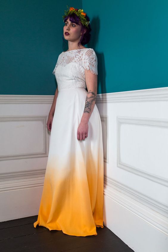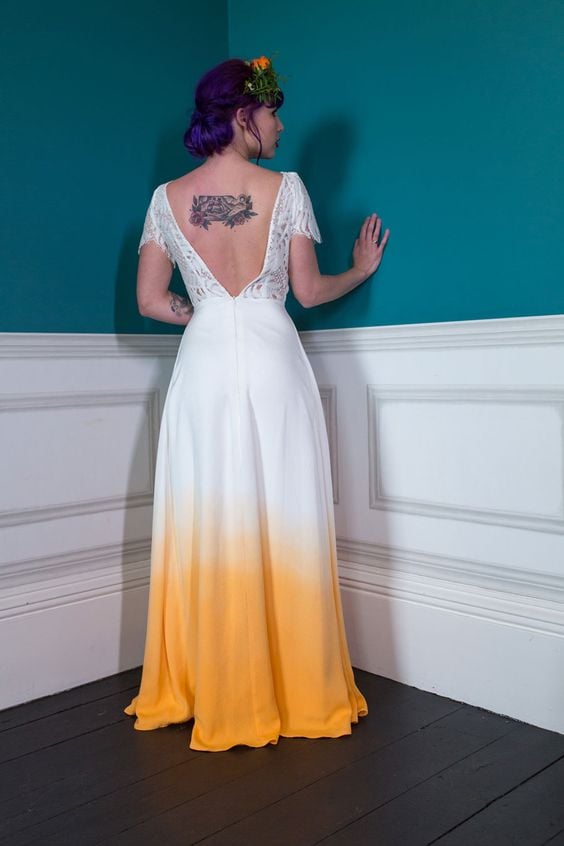 Ombre A Line Chiffon Dyed Orange Beach Boho Wedding Dresses Bridal Gowns