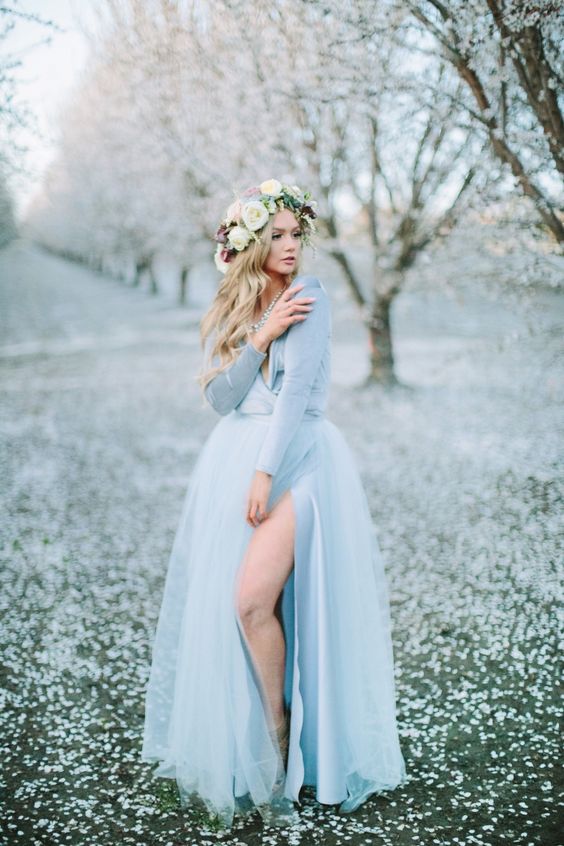Ball Gown Blue Tulle Beach Boho Wedding Dresses Bridal Gowns