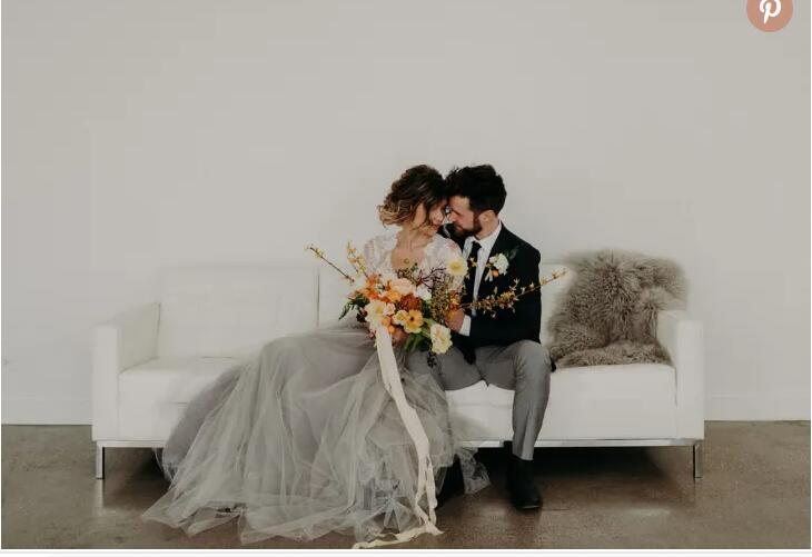 Light Grey A Line Tulle Lace Bodice Beach Boho Wedding Dresses Bridal Gowns