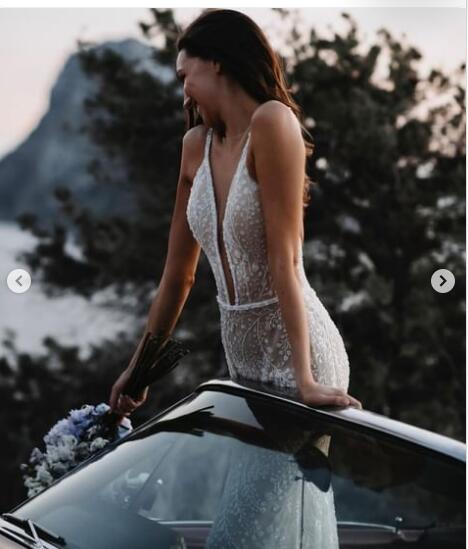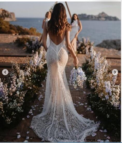 Sparkle Mermaid Tulle Sequins Lace Beach Boho Wedding Dresses Bridal Gowns