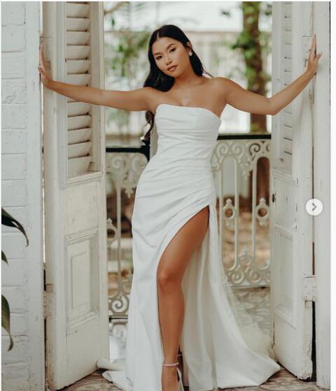 Sheath Sreapless Side Slit Beach Boho Wedding Dresses Bridal Gowns