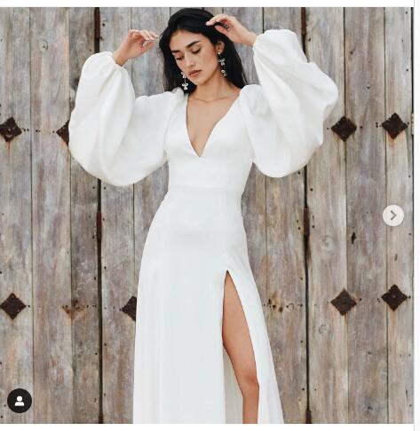 Sheath Long Sleeve Beach Boho Wedding Dresses Bridal Gowns