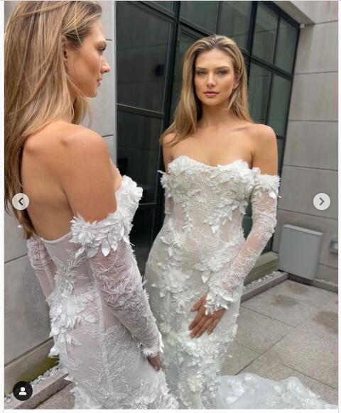 Luxury Mermaid Lace 3D Handmade Flowers Wedding Dresses Bridal Gowns