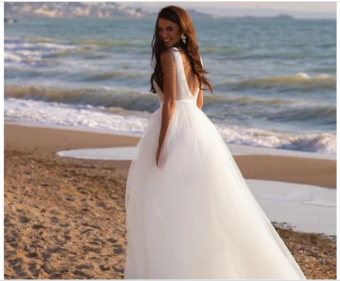 Sexy Deep V Neck Beach Boho Wedding Dresses Bridal Gowns