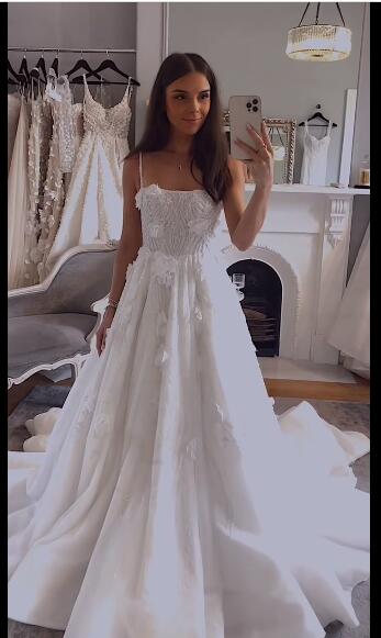 Simple A Line Handmade Flower Sleeveless Wedding Dresses Bridal Gowns