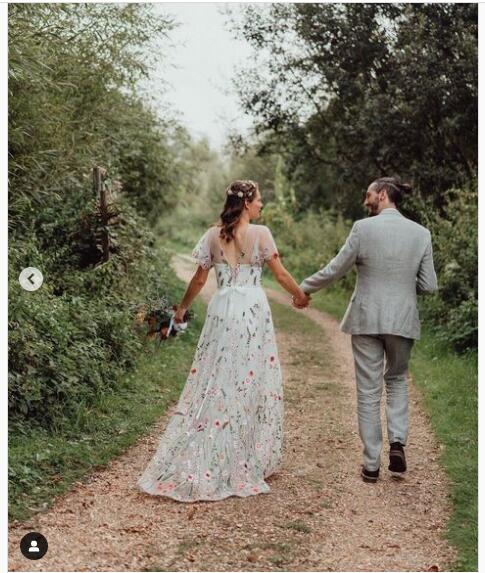 A Line Tulle Handmade Flowers Wedding Dresses Bridal Gowns