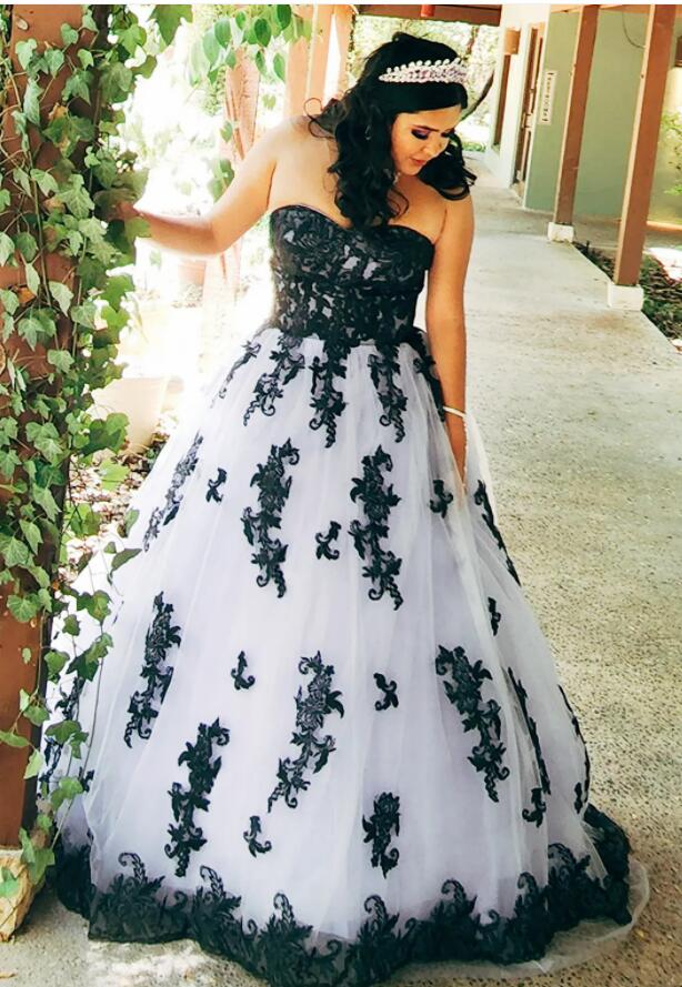 Vintage Black And White Wedding Gowns Gothic Bridal Dresses A Line Lace Appliques Sweetheart Sleeveless Lace-up Plus Size Vestido De Novia