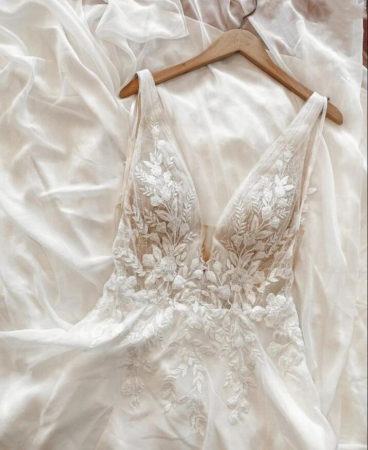 Princess Wedding Dress V-Neck Sleeve Boho Rustic Civil Floor length Sweep Train Chiffon Robe De Mairee Charming For Women