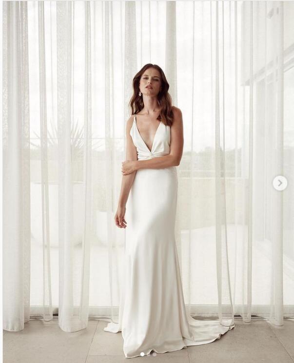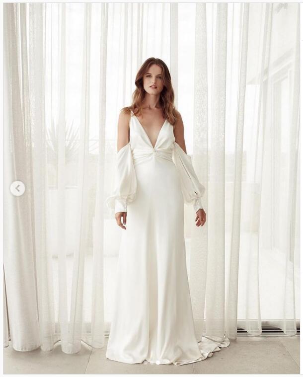 Sheath Long Sleeve Boho Beach Wedding Dresses Bridal Gowns