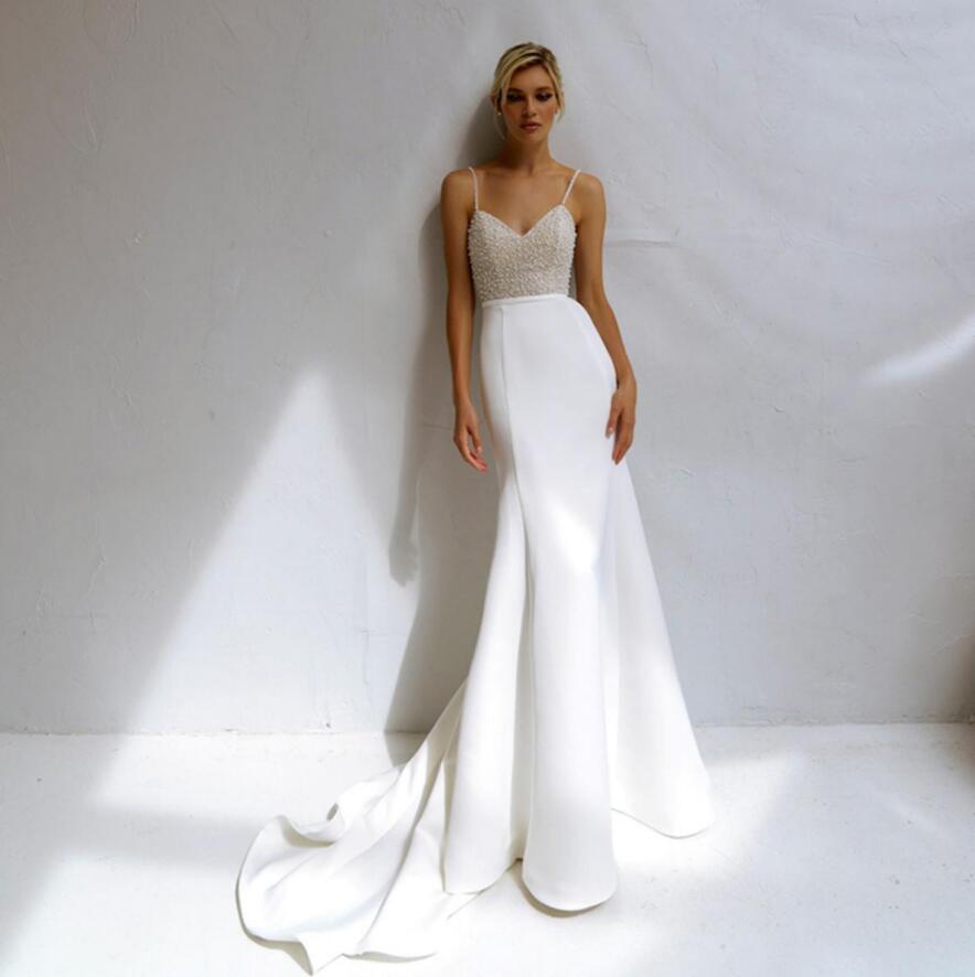 Classic Pearl Mermaid Wedding Dresses Spaghetti Straps Sweetheart Satin Bridal Gowns Simple Custom Made Dress Vestido De Novia