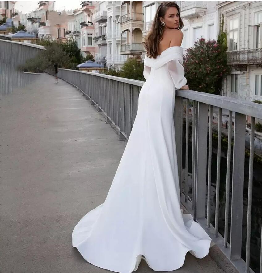 Satin Mermaid Wedding Dresses Long Fuff Sleeve Sexy Beach Bride Off The Shoulder Boho Bridal Gowns Vestidos De Noiva