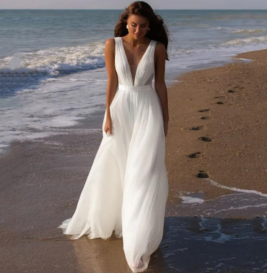 Charming Beach Bridal Wedding Dress A Line Sleeveless V Neckline Boho Wedding Gown for Bride Backless Robe de Mariee