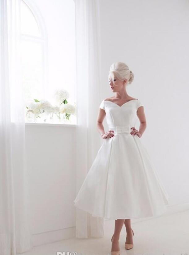 Summer Beach Tea Length Wedding Dress V-neck A-Line Bride Gowns Vestido de noiva curto robe de mariag