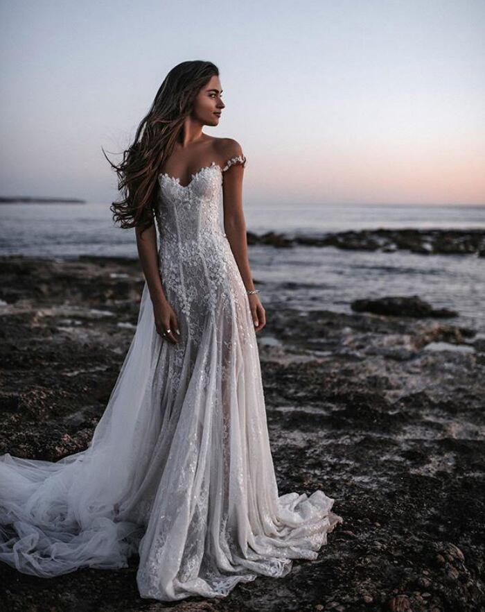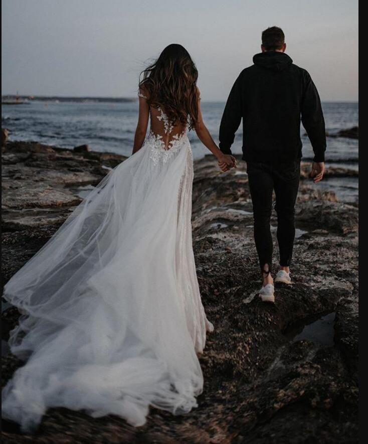 Beach Bohemian Wedding Dresses for Girls A Line Bride Bridal Gowns Plus Size Bride Lace Appliques V Neck Custom Made