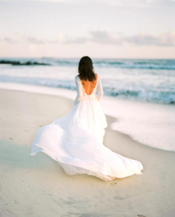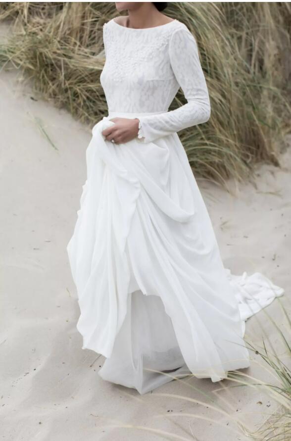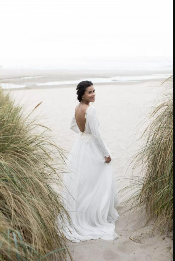 Simple Long Sleeves Wedding Dresses A Line Bridal Gowns Chiffon Backless Plus Size Custom Made