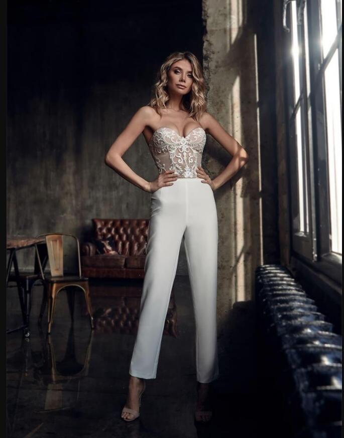 Bohemian Wedding Dresses Jumpsuit With Long Jacket Bridal Gowns Appliqued Lace Sweetheart Pants Suit Custom Made Beach