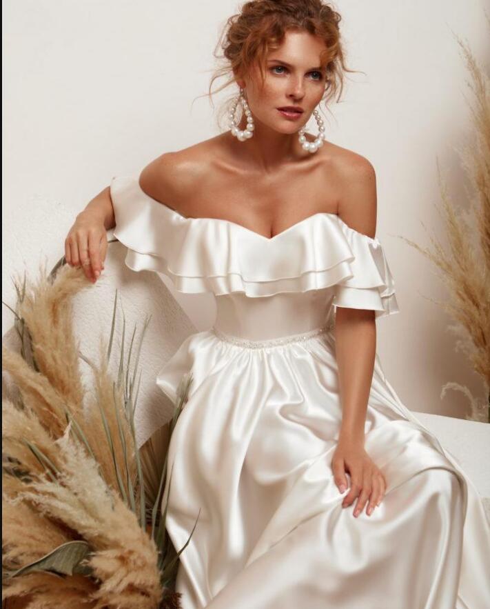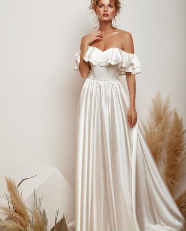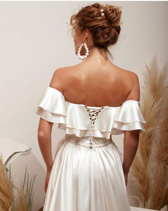 Satin Boho Wedding Dresses Off Shoulder Beaded Sashes Sleeveless Bridal Gown Backless Ruffled Sweep Train Custom Made Robes De Mariée